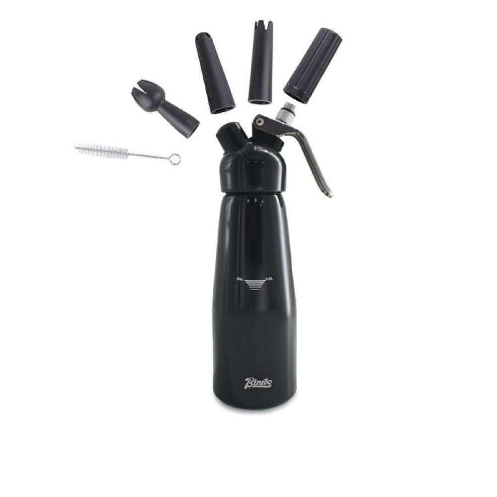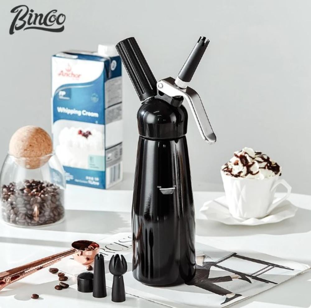 نقدم لك آلة صنع الكريمة من Bincoo المصنوعة باتقان وآمان عاليين، تعمل باسطوانات غاز N20، استخدم هذه الآلة الرائعة لصنع الكريمة المخفوقة وتزيين كوب القهوة والحلويات المقدمه معها.