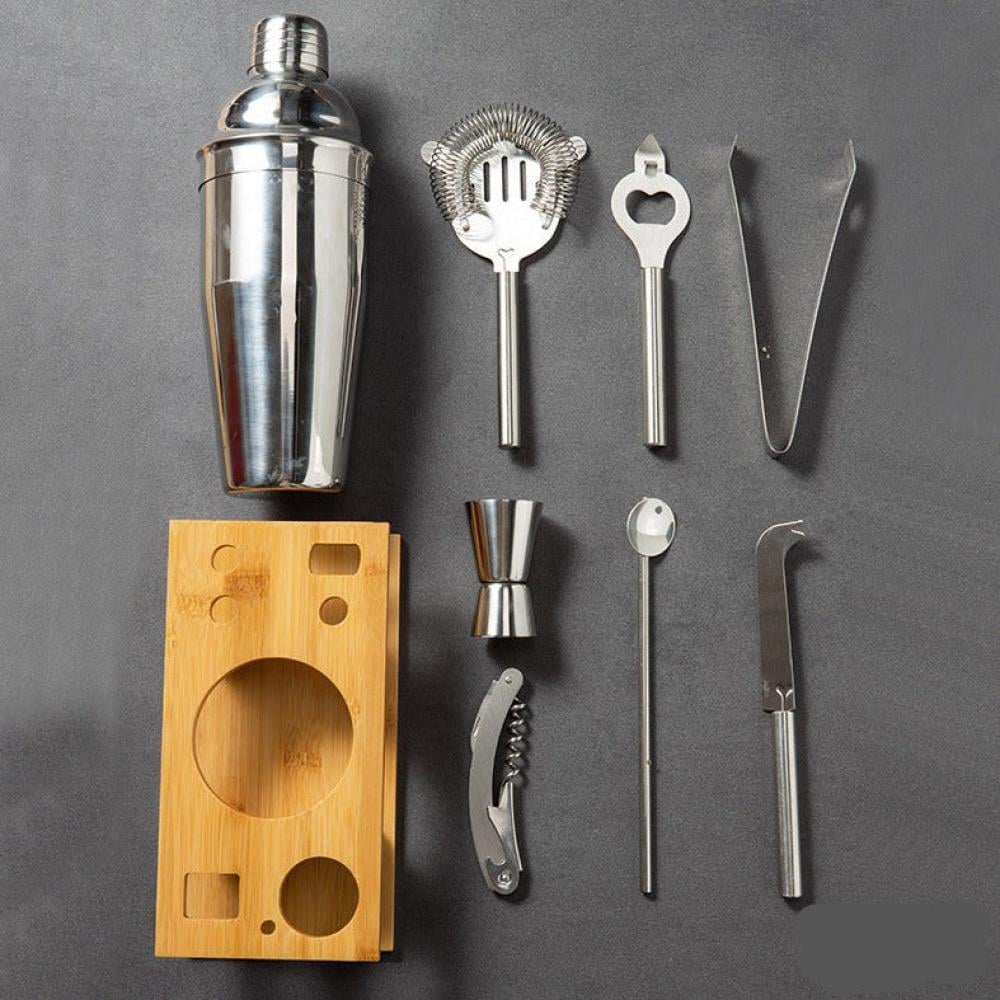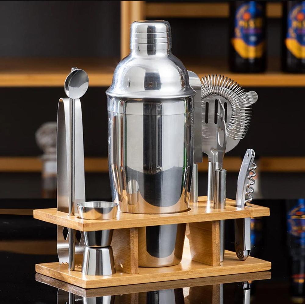 طقم أدوات تحضير المشروبات الاحترافي مع قاعدة خشبية أنيقة