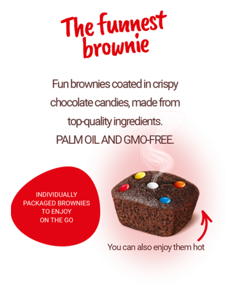 اجعل كل لحظة أكثر مرحاً مع براونيز الشوكولاتة المميزة المغطاة بحلوى الشوكولاتة المقرمشة والملونة. مصنوعة من أجود المكونات الطبيعية لتضمن لك طعماً شهياً وتجربة استثنائية.