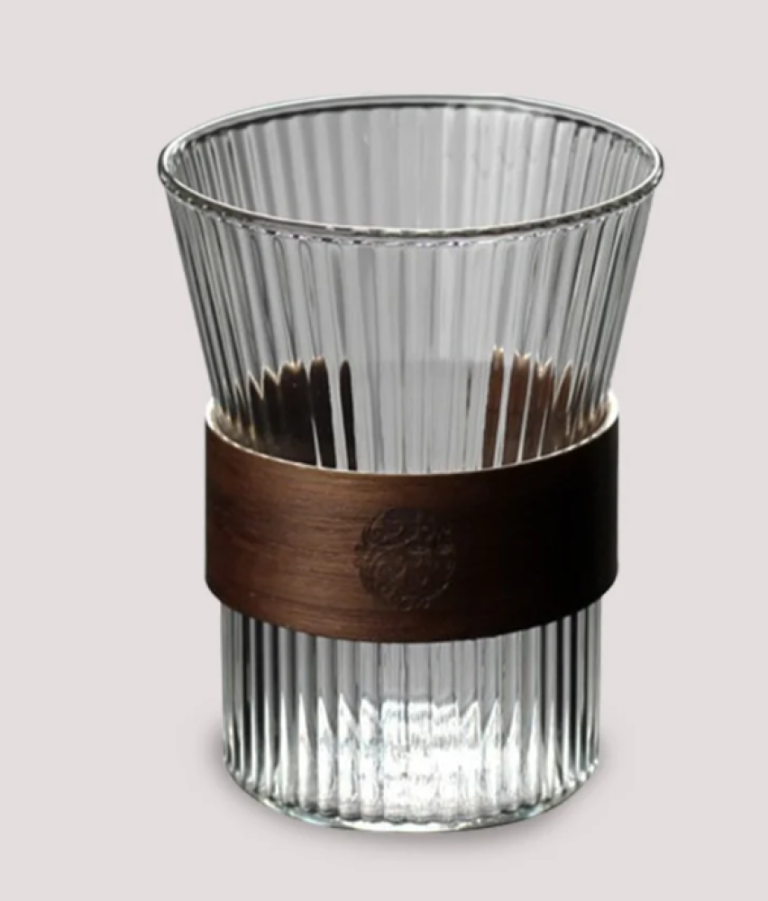 - قمع زجاجي مع حلقة تثبيت خشبية من خشب الزان